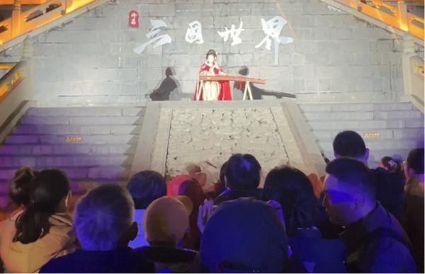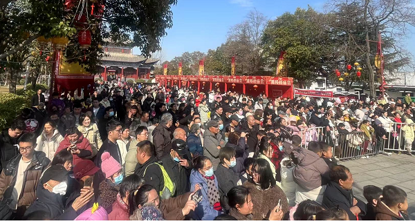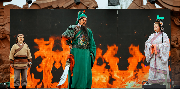 景區(qū)以三國文化為主題,打造了文廟武廟結(jié)合的行進(jìn)式光影秀《春秋・憶夢》,通過沉浸式演藝和建筑投影等創(chuàng)新形式,生動(dòng)再現(xiàn)了關(guān)云長的英雄故事,為游客獻(xiàn)上了一場震撼心靈的文化盛宴。同時(shí),景區(qū)還開展了多場《忠義千秋》情景劇演出,全新包裝的演員陣容和重新打造的演出內(nèi)容,吸引了眾多游客駐足觀看,贏得了陣陣掌聲。此外,夜間的古風(fēng)舞蹈、傳統(tǒng)器樂演奏及民俗文化表演,更是讓游客感受到了濃濃的新春年味,場場演出人氣爆滿。