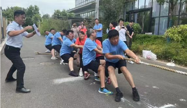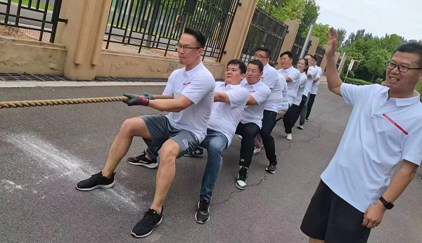 拔河比賽為團(tuán)體賽,三家公司各自組建參賽隊(duì)伍,通過(guò)抽簽決定出場(chǎng)順序。隨著哨聲響起,各支參賽隊(duì)伍咬緊牙關(guān)你來(lái)我往,拉扯僵持之間,不分仲伯。一根長(zhǎng)繩凝聚著兩方力量,承載著大家的激情、自信和活力。