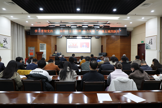 為深入貫徹黨的二十屆四中全會精神,把思想和行動統(tǒng)一到黨中央決策部署上來,12月3日下午,集團組織召開了黨的二十屆四中全會精神宣講報告會。此次報告會以“學(xué)習(xí)貫徹黨的二十屆四中全會精神 努力實現(xiàn)‘兩融五城四躍升’”為主題,市委黨校副教授崔戰(zhàn)偉作宣講報告。