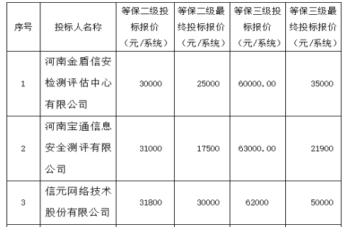 (一)成交候選人名稱:河南省鼎信信息安全等級(jí)測(cè)評(píng)有限公司