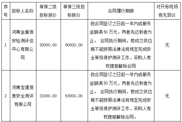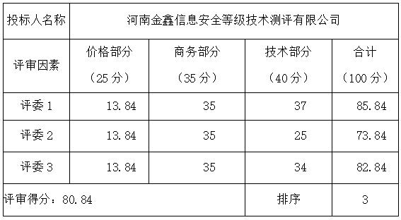 (一)成交候選人名稱:河南金鑫信息安全等級(jí)技術(shù)測(cè)評(píng)有限公司