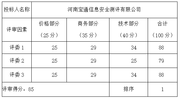 (一)成交候選人名稱:河南寶通信息安全測(cè)評(píng)有限公司