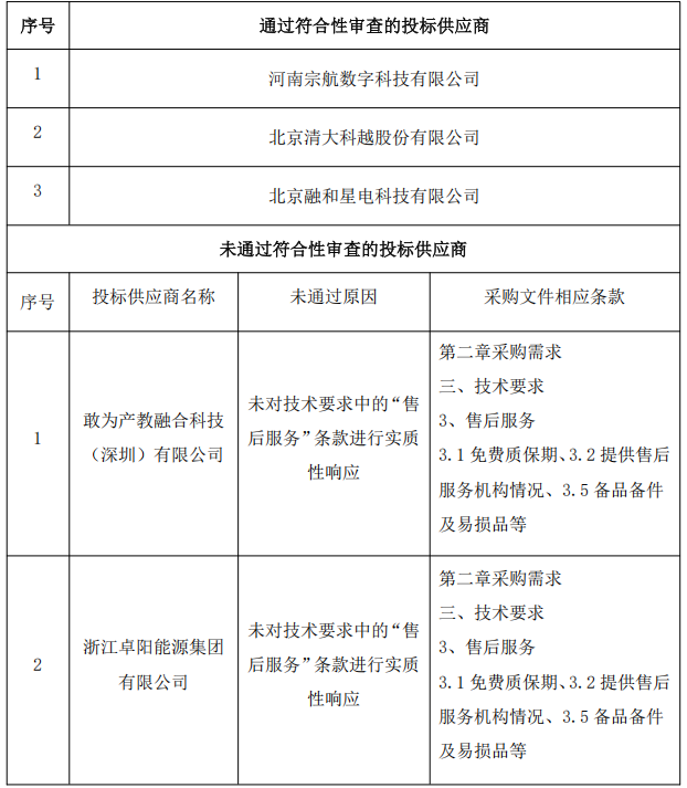 (一)成交候選人名稱:北京清大科越股份有限公司