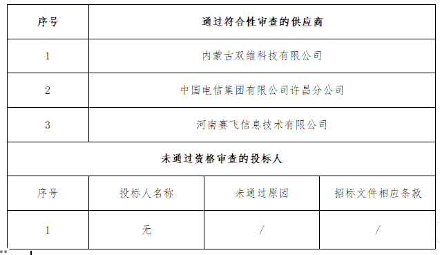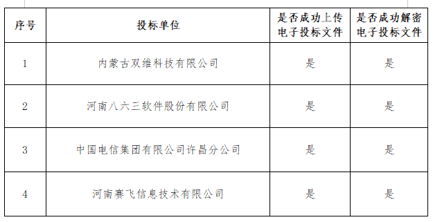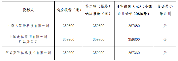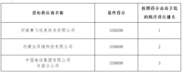 第三成交候選人:中國電信集團有限公司許昌分公司