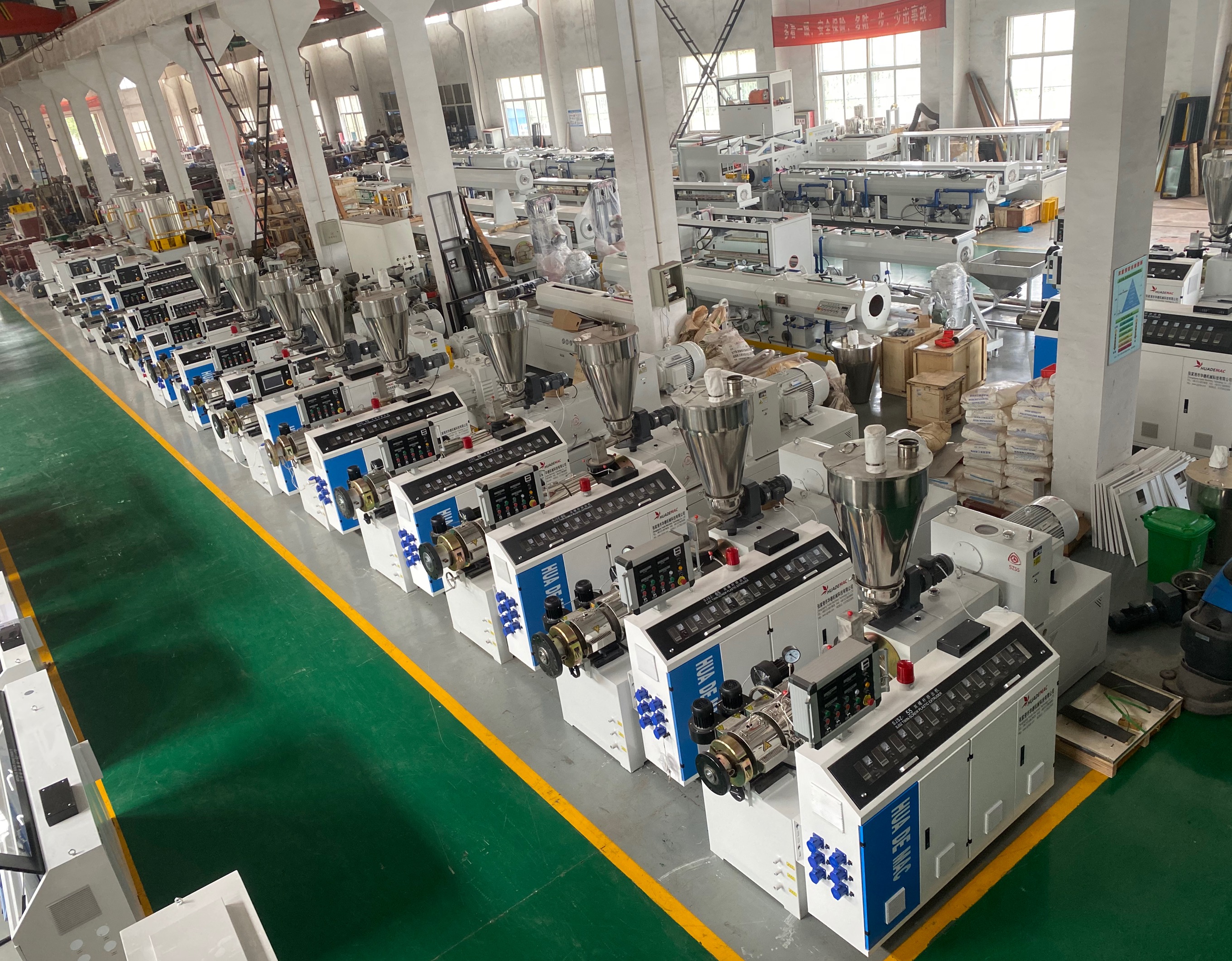 Professional manufacturing: series of single and double screw extruders, PP-R pipe units, PVC pipe units